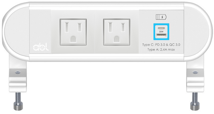 Chroma 2xUSA socket 1xUSB A+C PD35W charger, White fascias & end caps, White body, 6.5ft integrated cable with USA plug