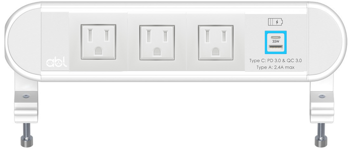 Chroma 3xUSA socket 1xUSB A+C PD35W charger, White fascias & end caps, White body, 6.5ft integrated cable with USA plug