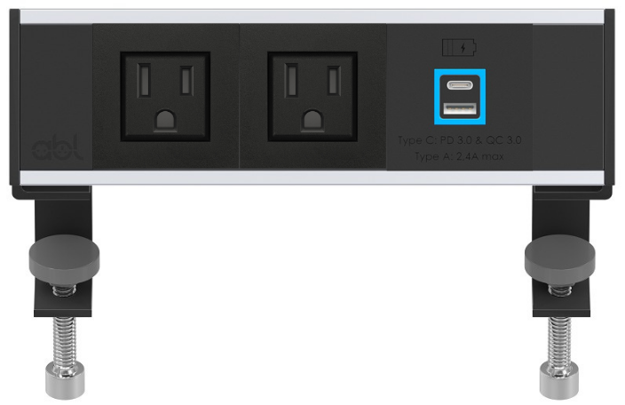 Flexi 2xUSA socket 1xUSB A+C PD35W charger, Black fascias & end caps, Silver body, 6.5ft integrated cable with USA plug