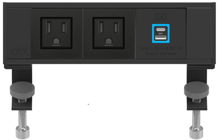 Flexi 2xUSA socket 1xUSB A+C PD35W charger, Black fascias & end caps, Black body, 6.5ft integrated cable with USA plug