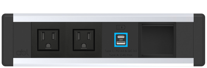 Level-E 2xUSA socket 1xUSB A+C PD35W charger 1xIMP slot, Black fascias & end caps, Silver body, 6.5ft integrated cable with USA plug