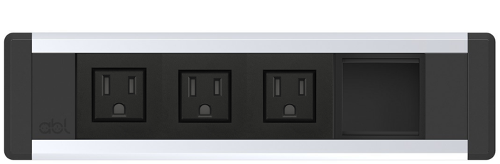 Level-E 3xUSA socket 1xIMP slot, Black fascias & end caps, Silver body, 6.5ft integrated cable with USA plug