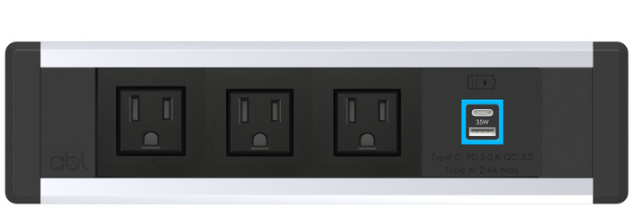Level-E 3xUSA socket 1xUSB A+C charger , Black fascias & end caps, Silver body, 6.5ft integrated cable with USA plug