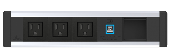Level-E 4xUSA socket 1xUSB A+C PD35W charger 1xIMP slot, Black fascias & end caps, Silver body, 6.5ft integrated cable with USA plug