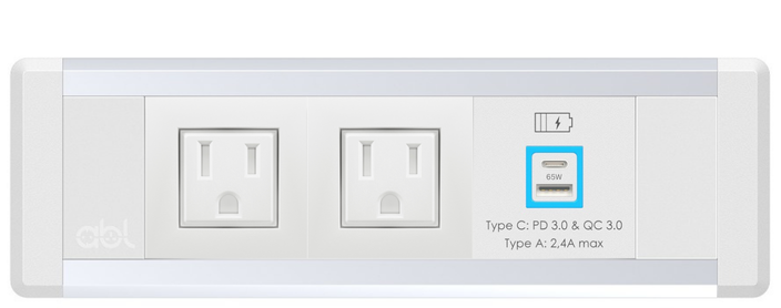Level-E 2xUSA socket 1xUSB A+C PD65W charger 1xIMP slot, White fascias & end caps, Silver body, 6.5ft integrated cable with USA plug
