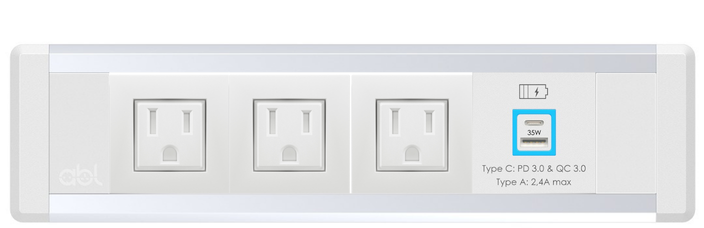 Level-E 3xUSA socket 1xUSB A+C charger , White fascias & end caps, Silver body, 6.5ft integrated cable with USA plug