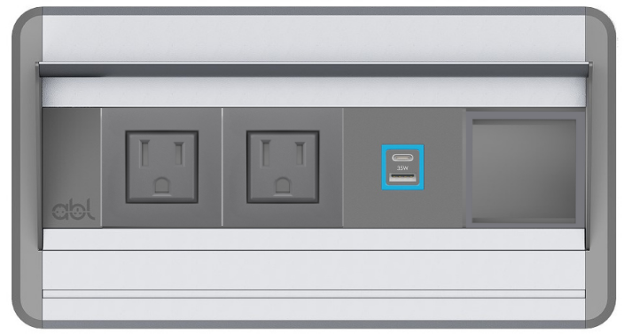 Flip-S 2xUSA socket 1xUSB A+C PD35W charger 1xIMP slot, Grey fascias & end caps, Silver body, 6.5ft integrated cable with USA plug