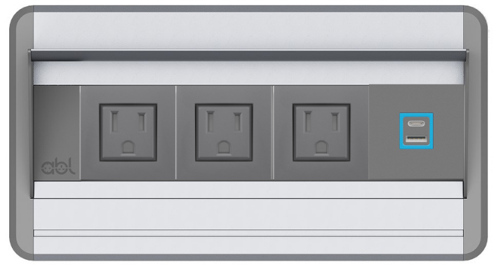 Flip-S 3xUSA socket 1xUSB A+C PD35W charger, Grey fascias & end caps, Silver body, 6.5ft integrated cable with USA plug