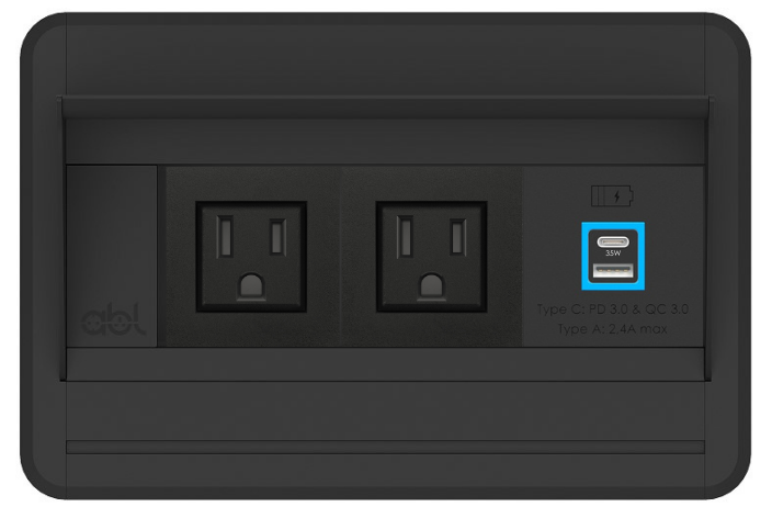 Flip-S 2xUSA socket 1xUSB A+C , Black fascias & end caps, Black body, 6.5ft integrated cable with USA plug