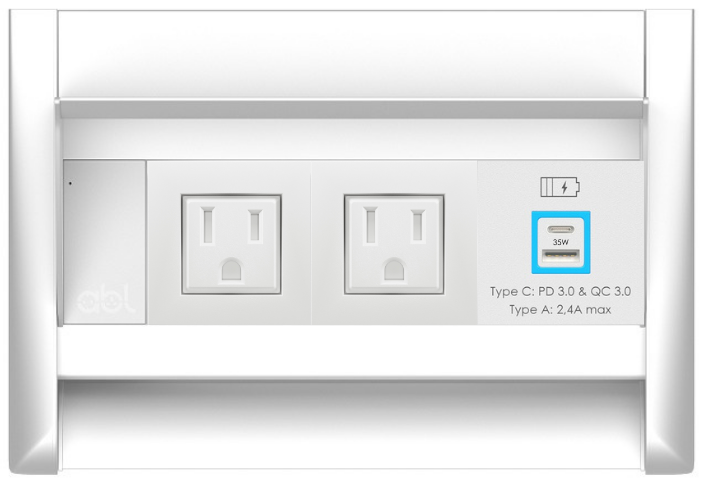 Flip-S 2xUSA socket 1xUSB A+C , White fascias & end caps, White body, 6.5ft integrated cable with USA plug