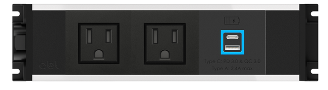Link 2xUSA socket 1xUSB A+C PD35W charger Power entry via 3 Pole connector, Black fascias & end caps, Silver body, 6.5ft integrated cable with USA plug