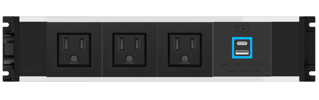 Link 3xUSA socket 1xUSB A+C PD35W charger Power entry via 3 Pole connector, Black fascias & end caps, Silver body, 6.5ft integrated cable with USA plug