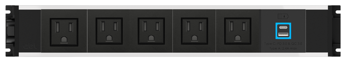 Link 5xUSA socket 1xUSB A+C PD35W charger Power entry via 3 Pole connector, Black fascias & end caps, Silver body, 6.5ft integrated cable with USA plug
