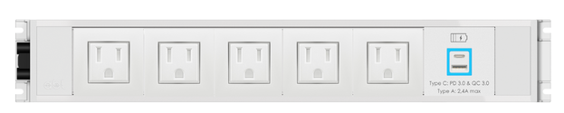 Link 5xUSA socket 1xUSB A+C PD35W charger Power entry via 3 Pole connector, White fascias & end caps, Silver body, 6.5ft integrated cable with USA plug